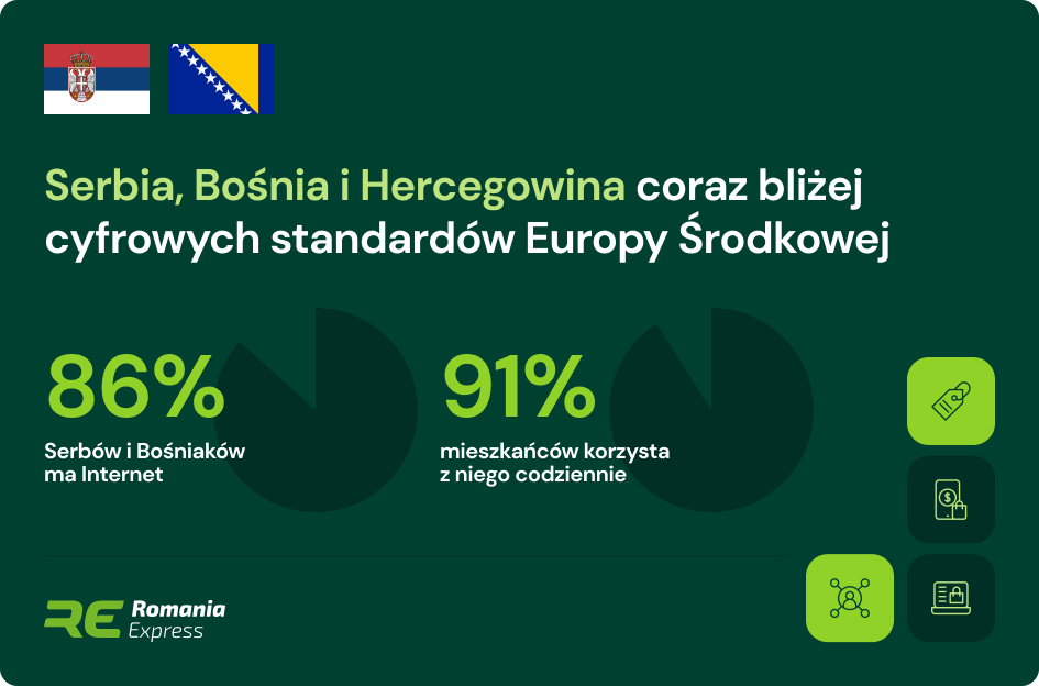 Serbia oraz Bośnia i Hercegowina znajdują się w fazie intensywnej cyfryzacji. W Serbii internet ma 85,4% mieszkańców, z czego aż 91,3% korzysta z niego codziennie. W Bośni i Hercegowinie poziom penetracji internetu wynosi 86,7% i jest to jeden z najwyższych wskaźników w regionie, który pokazuje, że cyfrowe fundamenty są bardzo stabilne. Region szybko nadrabia dystans wobec Europy Środkowej, a jego konsumenci mają coraz bardziej dojrzałe oczekiwania zakupowe.
