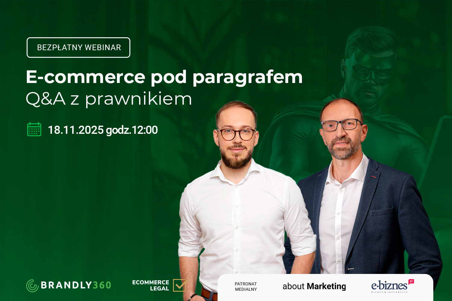 Webinar o prawie w e-commerce dla sklepów rozwijających sprzedaż także za granicą. Ceny, promocje, dyrektywy UE i częste błędy. Miłosz Nowakowski z Brandly360 pyta, Marcin Tomczak z ecommerce.legal odpowiada. 18 listopada, g. 12. Zapisz się bezpłatnie już teraz.