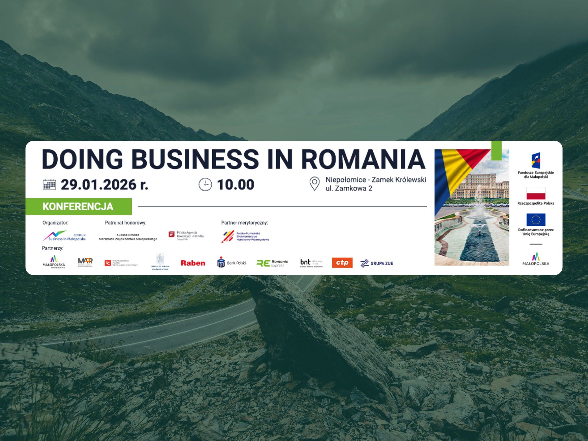 Jeśli Twoja firma z sektora MŚP z Małopolski szuka stabilnego i perspektywicznego kierunku ekspansji zagranicznej, podczas konferencji eksperci rynkowi dostarczą kompleksowej wiedzy o perspektywicznym rynku Rumunii.